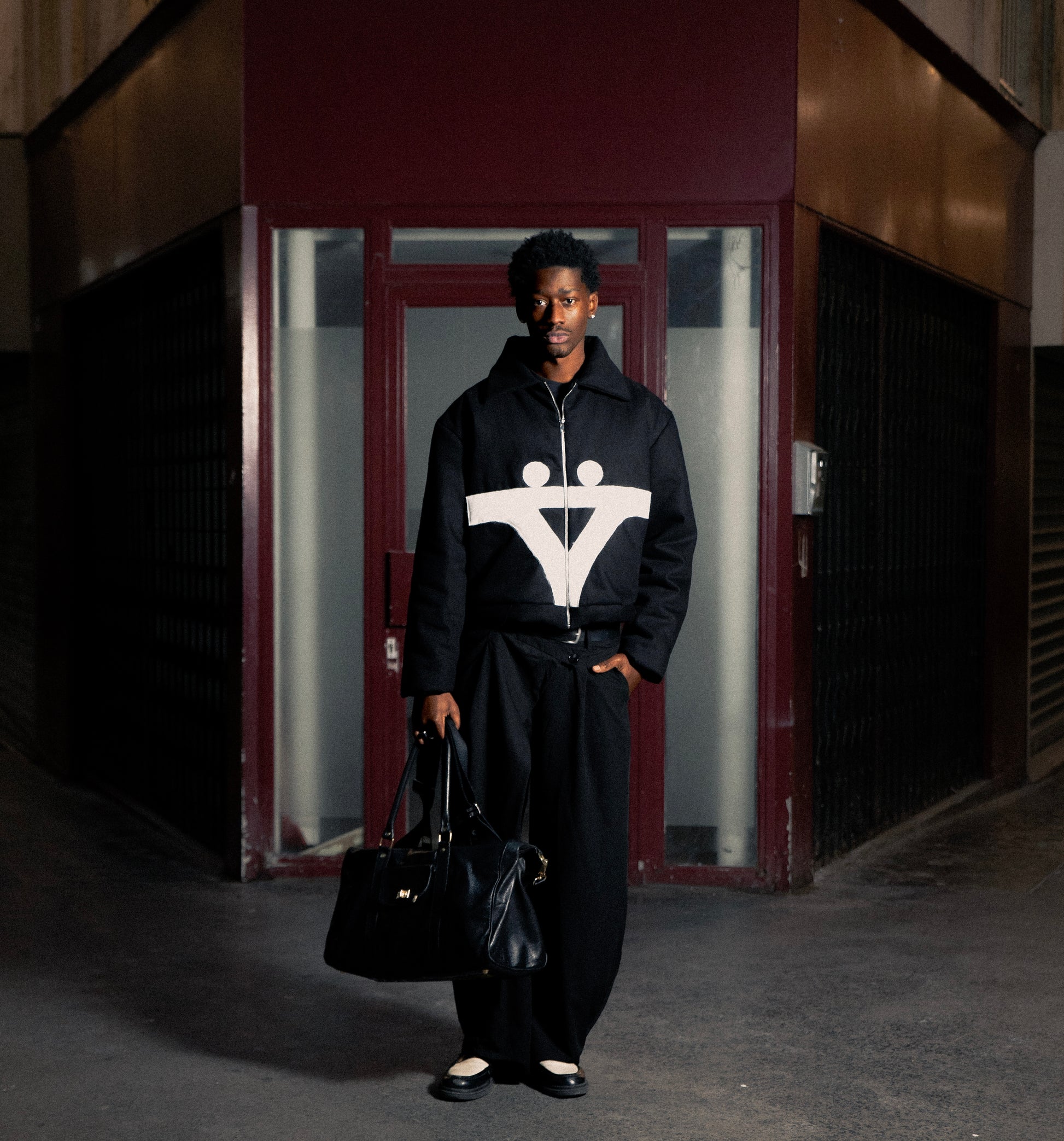 La coupe, le noir profond, le contraste blanc, tout est pensé pour créer cet effet iconique.